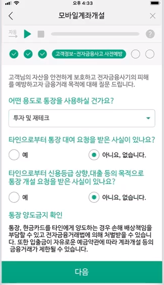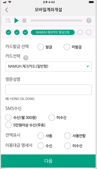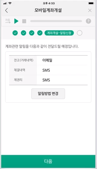SMS 수신 - 미수신 선택 후 '다음' 클릭