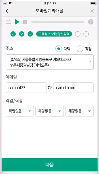 7. 신분증 촬영 후 '다음' (정보가 맞게 표기 되었는지 꼭 확인할 것!)